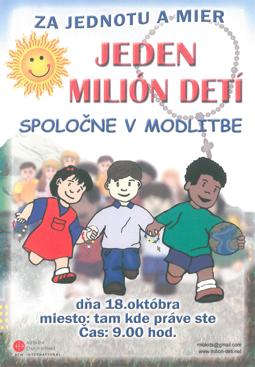 Dňa 18. októbra 2023 sa na celom svete deti modlia ruženec za mier a jednotu vo svete. Iniciatívu organizuje Pápežská nadácia ACN – Pomoc trpiacej Cirkvi.