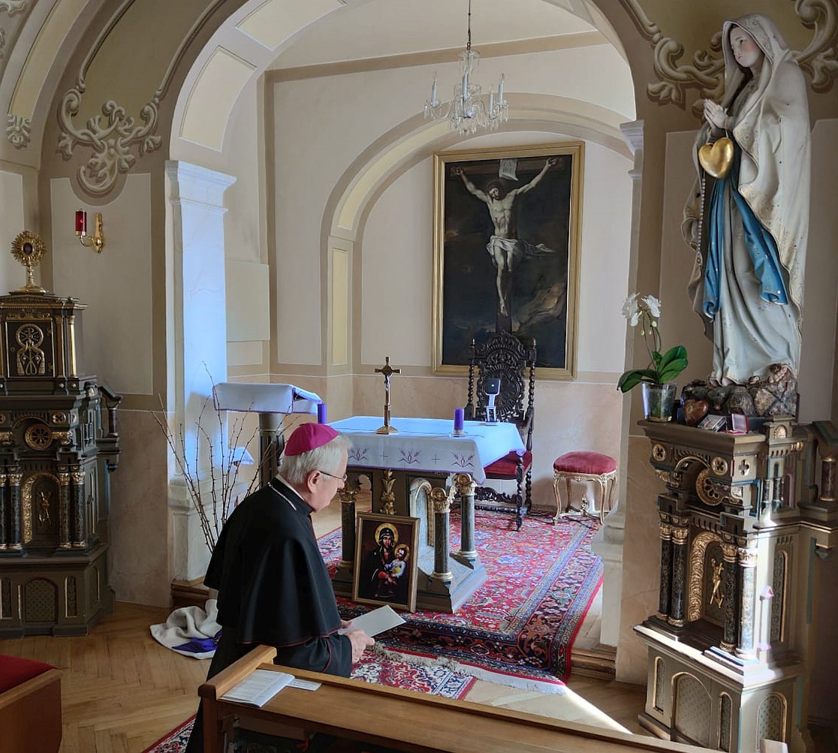 V príhovore na začiatku sv. omše povedal: „Pri tejto sv. omši sa chceme solidarizovať so všetkými, ktorí teraz prežívajú tragédiu v Turecku a v Sýrii, kde počet obetí zemetrasenia (6. 2. 2023) už presiahol 5 000. Vezmime do úvahy aj ich rodinných príslušníkov, ktorí prežívajú a musia prežívať túto tragédiu nad stratou svojich drahých – manželov, manželiek, detí, súrodencov, rodičov, starých rodičov... Preto aj túto sv. omšu obetujem v jednote so Svätým Otcom ale aj s mnohými ďalšími biskupmi, kňazmi celého sveta, obetujem ju práve za obete zemetrasenia, za trúchliacich pozostalých, za všetkých bez prístrešia a základných potrieb pre život...