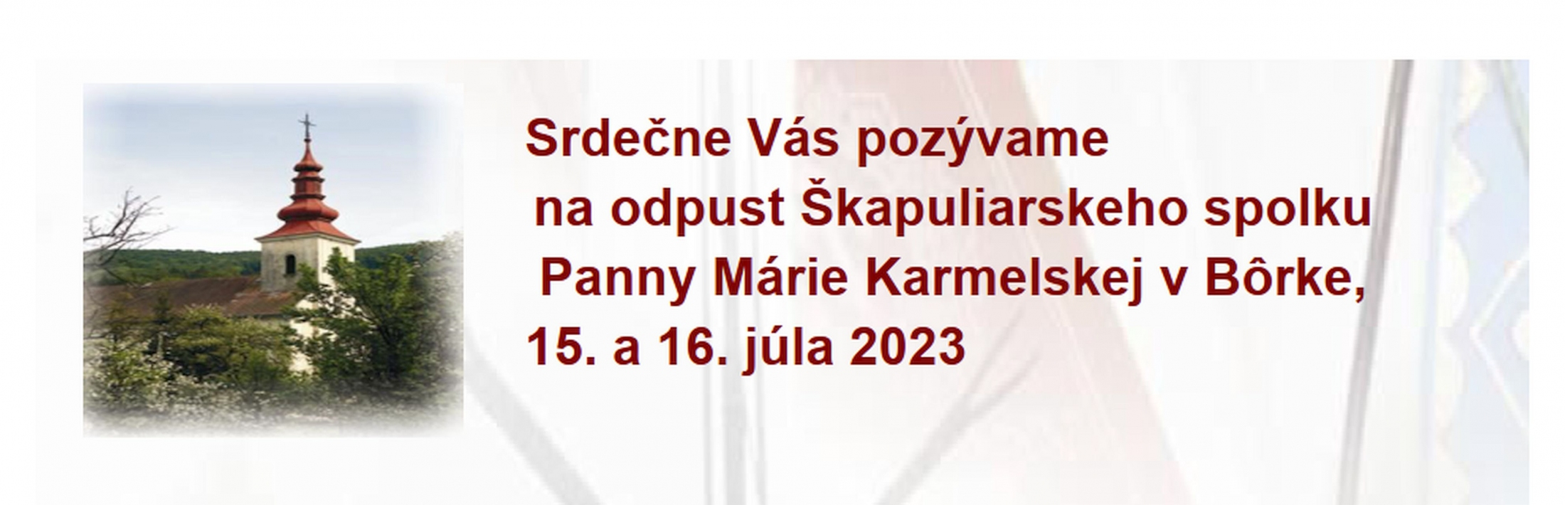 Srdečne Vás pozývame na odpust Škapuliarskeho spolku Panny Márie Karmelskej v Bôrke, 15. a 16. júla 2023