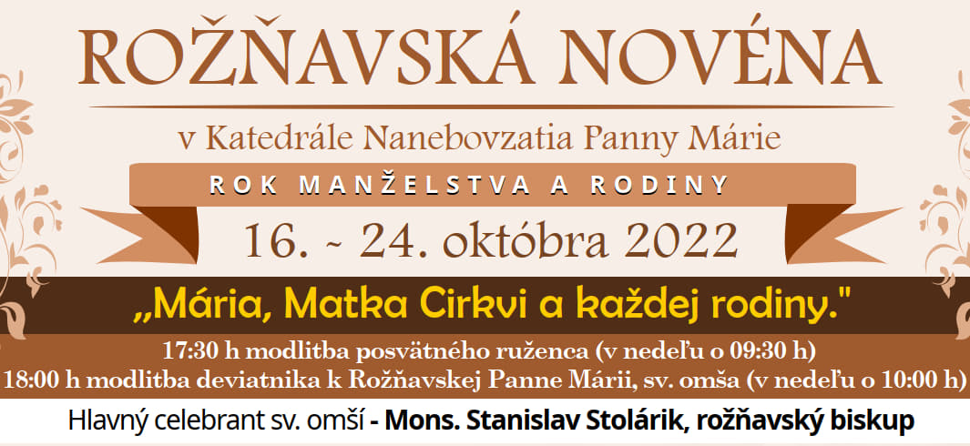 Rožňavský diecézny biskup Mons. Stanislav Stolárik pozýva aj tento rok, spojiť sa v modlitbe pred obrazom Rožňavskej Panny Márie počas druhej Rožňavskej novény v dňoch 16. – 24. októbra 2022. Opäť bude možné zúčastniť sa aj cez katolícke médiá: vďaka Rádiu Lumen, ktoré bude Novénu vysielať každý deň a aj televízii Lux, ktorá prinesie priamy prenos v nedeľu 23. októbra o 10.00 hod.