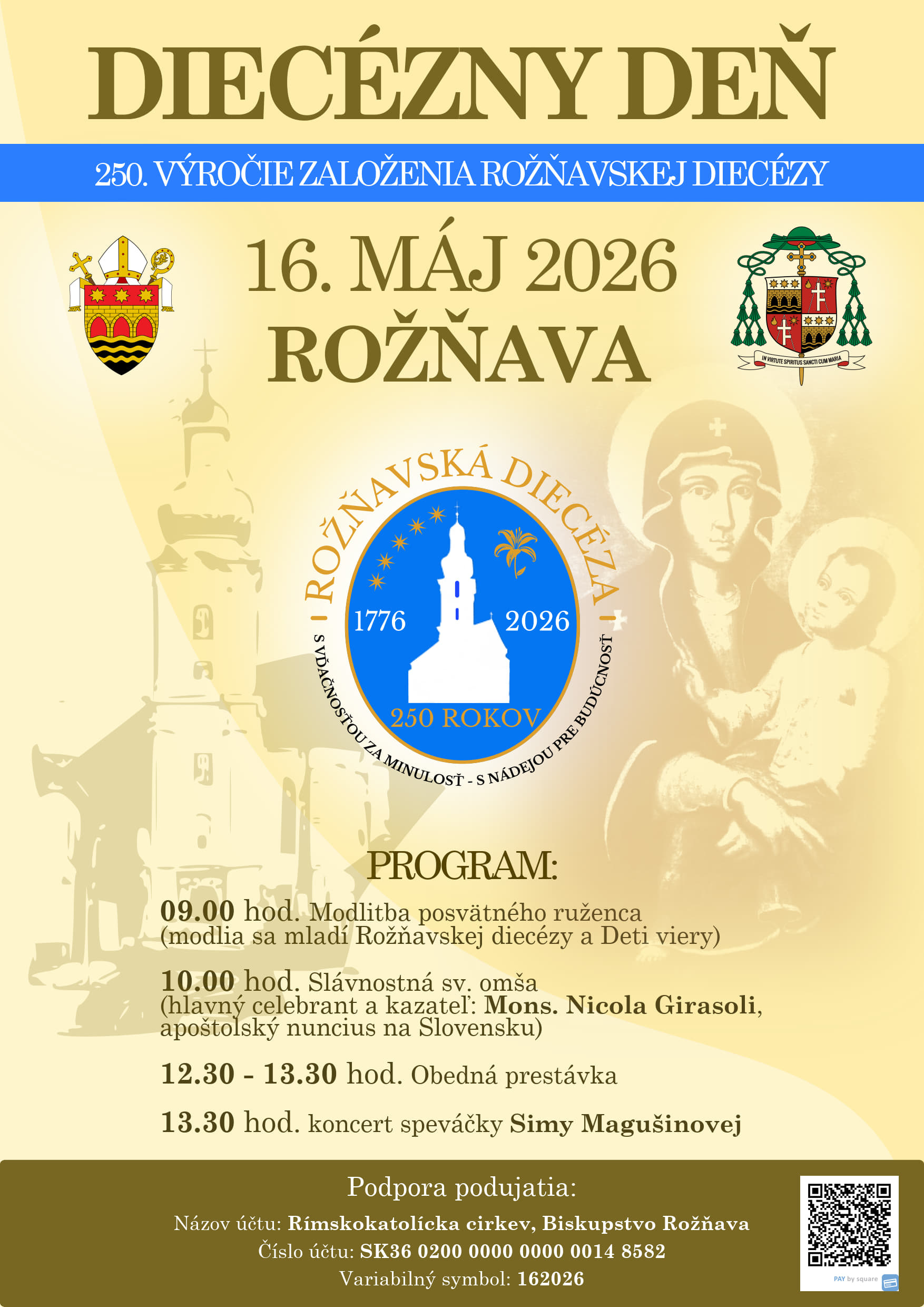Pozvánka na Diecézny deň - oslavy 250. výročia založenia diecézy - 16. máj 2026